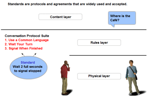 Dalam jaringan computer, sebuah pesan dapat dikirim dan terkirim dari source ke destination melalui sebuah “aturan”, aturan inilah yang dinamakan protocol. Dalam level manusia, beberapa aturan komunikasi bisa berupa formal atau bisa juga “yang penting simple dan mudah dipahami”, tergantung dari prakteknya atau daerah asal bahasa komunikasi tersebut.