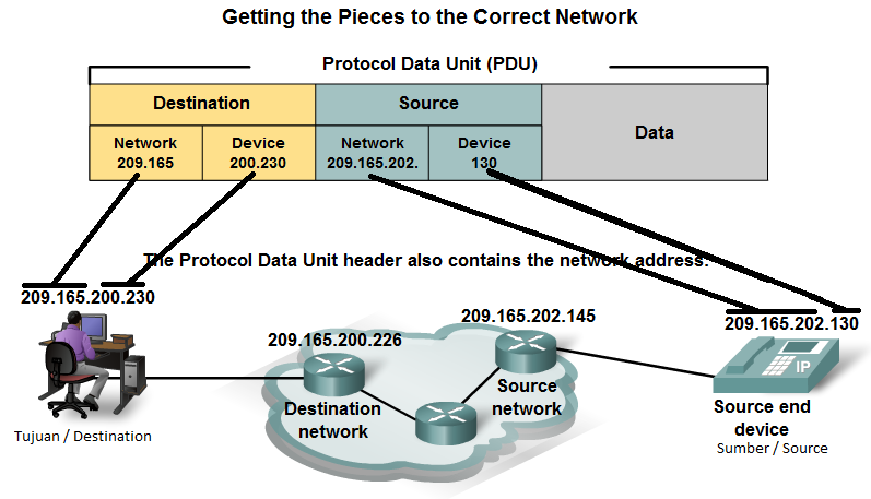 Destination Host : Frame di terima dari jaringan à bungkusnya dibuka (baca: encapsulationnya) trus digabung2in pecahannya jadi Packet