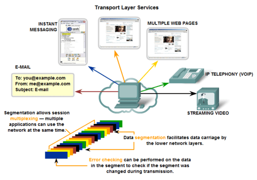 *bayangkan kita pake video steaming….yang kita terima adalah data e-mail, kita lagi e-mail…yang kita terima adalah data dari aplikasi lain…disini lah transport layer bekerja…ensure the right data delivers to the right application that needed