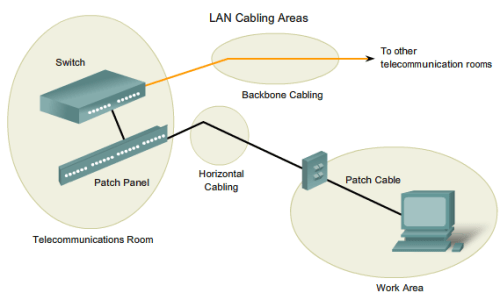 When planning the installation of LAN cabling, there are four physical areas to consider:
