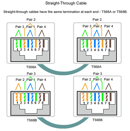 Straight-Through = buat Komputer “vs” Switch, Switch “vs” Router (dipakai buat yg berbeda jenis)