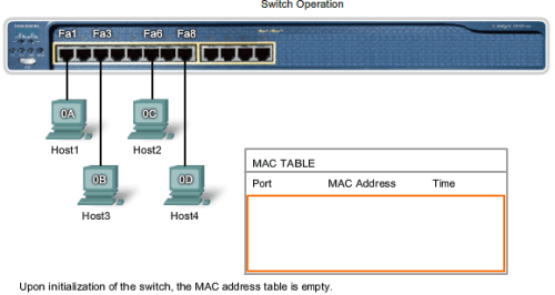 However, when the computer starts up, the NIC copies the address into RAM. When examining frames, it is the address in RAM that is used as the source address to compare with the destination address. The MAC address is used by the NIC to determine if a message should be passed to the upper layers for processing. (makanya ada software2/hardware2 buat duplikat MAC address…contohnya aja TP-LINK…ada tuh buat duplicate mac address…biasanya buat Internetan pake Cable modem kek FastNet)