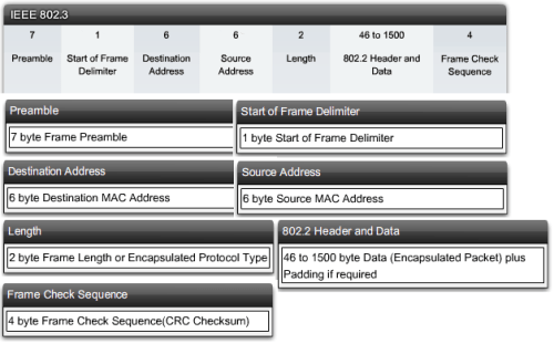The Preamble (7 bytes) and Start Frame Delimiter (SFD) (1 byte) fields digunakan untuk sending dan receiving. 8 byte pertama dari frame Ethernet digunakan untuk memberitahu lawan “bicara” bahwa mereka siap untuk menerima atau mengirim frame.
