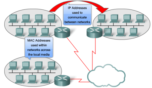 Initially, Ethernet was implemented as part of a bus topology. Every network device was connected to the same, shared media. In low traffic or small networks, this was an acceptable deployment. The main problem to solve was how to identify each device. The signal could be sent to every device, but how would each device identify if it were the intended receiver of the message?