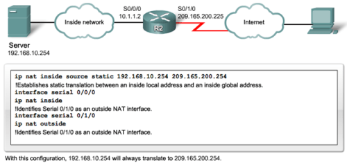 If the external WAN IP address of the SOHO router is 209.165.200.158, the external user could enter http://209.165.200.158 and the Linksys router would redirect the HTTP request to the internal web server at IP address 192.168.1.254, using the default port number 80.