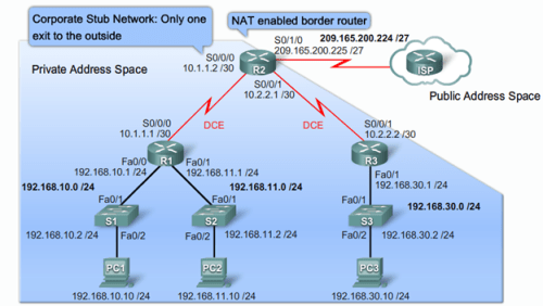 Biasanya klo dalam topology jaringan, NAT itu di aplikasikan di Stub Topology…