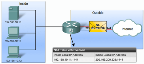 NAT overload kadang disebut juga PAT (Port Address Translation) digunakan untuk menampung multiple private IP addresses ke 1 alamat IP public, ini metode paling umum dipake di ISP, aaaannnnnnnnddddd that’s why until recently we never run out of IPv4….