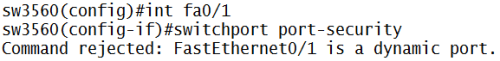 nah…baru mau deh dia dikasi port security (rada2 emang nih switch layer 3)