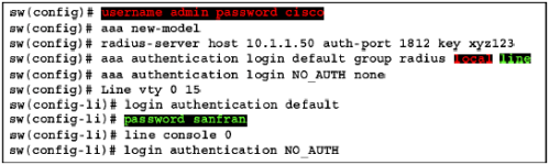 - command aaa new-model untuk ngasi tau si switch/router bahwa kita pake AAA server untuk urusan username password (yang terbaru adalah yang new-model)
