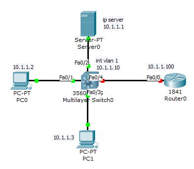 - coba ganti alat yang kecolok di port Fa0/1 dengan yang lain (hasil nya pasti RTO-Request Time Out)…
