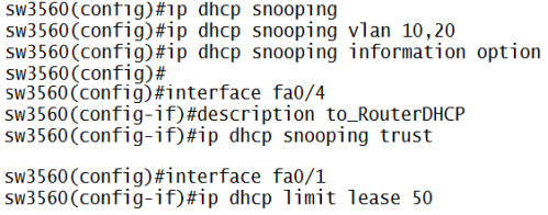 - enable dhcp snooping dengan ip dhcp snooping