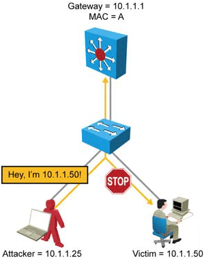 klo ip nya uda palsu semua…uda tinggal dimaenin deh gateway-nya…arahin traffic nya ke komputer kita…BERES !!