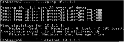 kita tes ping lalu telnet
