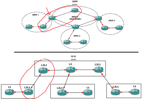 Hanya saja ISIS Cuma punya 2 level: Level 1 dan Level 2 (level 0 buat ES (End System) ke IS dan level 3 buat external route ga kepake di Cisco)