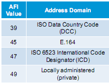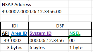 NSAP addressing structure: AFI.Area ID.System ID.NSEL