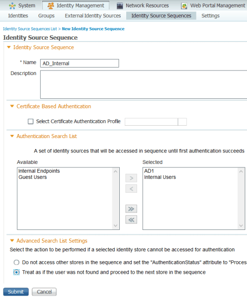 Masuk ke Administration -> Identity Management -> Identity Source Sequences