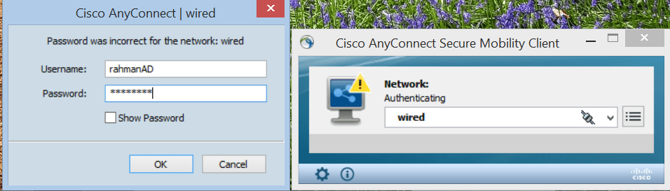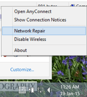 Klik network repair di Cisco AnyConnect Icon (kanan bawah layar monitor)