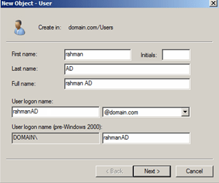 Selain initial…semua harus diisi (untuk logon ke network pake “User Logon Name” yang ada di server)