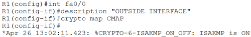 And last, taro itu crypto map di interface OUTSIDE alias yang ke WAN alias yang kearah Peer VPN kita