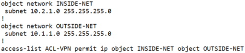 - Bikin ACL, biar INSIDE object (yg isinya network 10.2.1.0) bisa ke OUTSIDE (bikin juga object ini, ke 10.1.1.0)