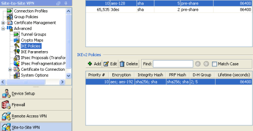 Site-to-Site VPN > Advanced > IKE Policies > add (IKEv2 policies)