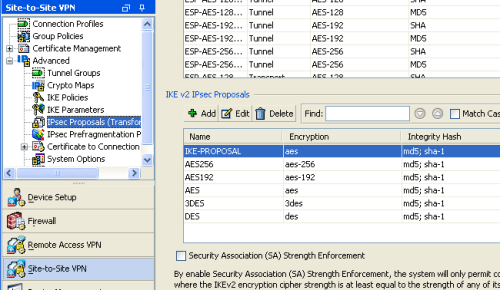 Next, the proposal…Site-to-Site VPN > Advanced > IPsec Proposals > add (IKE v2 IPsec Proposals)