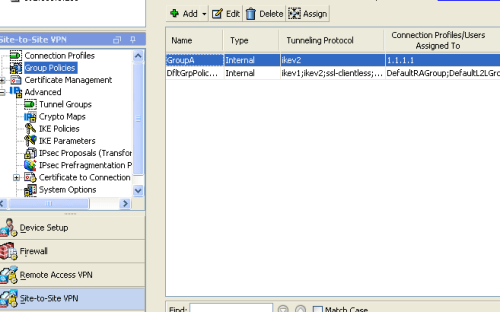 Trus configure tunnel-group-nya on Site-to-Site VPN > Advanced > Tunnel Groups > add