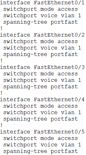Masing2 port di switch fa0/1 – 5 kita set jadi access dan membawa vlan voice 1